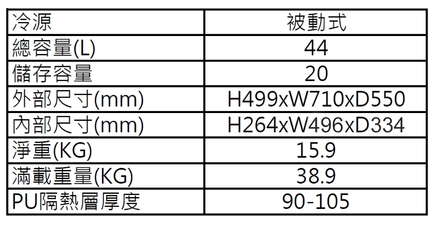 環境溫度-20°C,可維持0°C(最低溫)達34.4小時